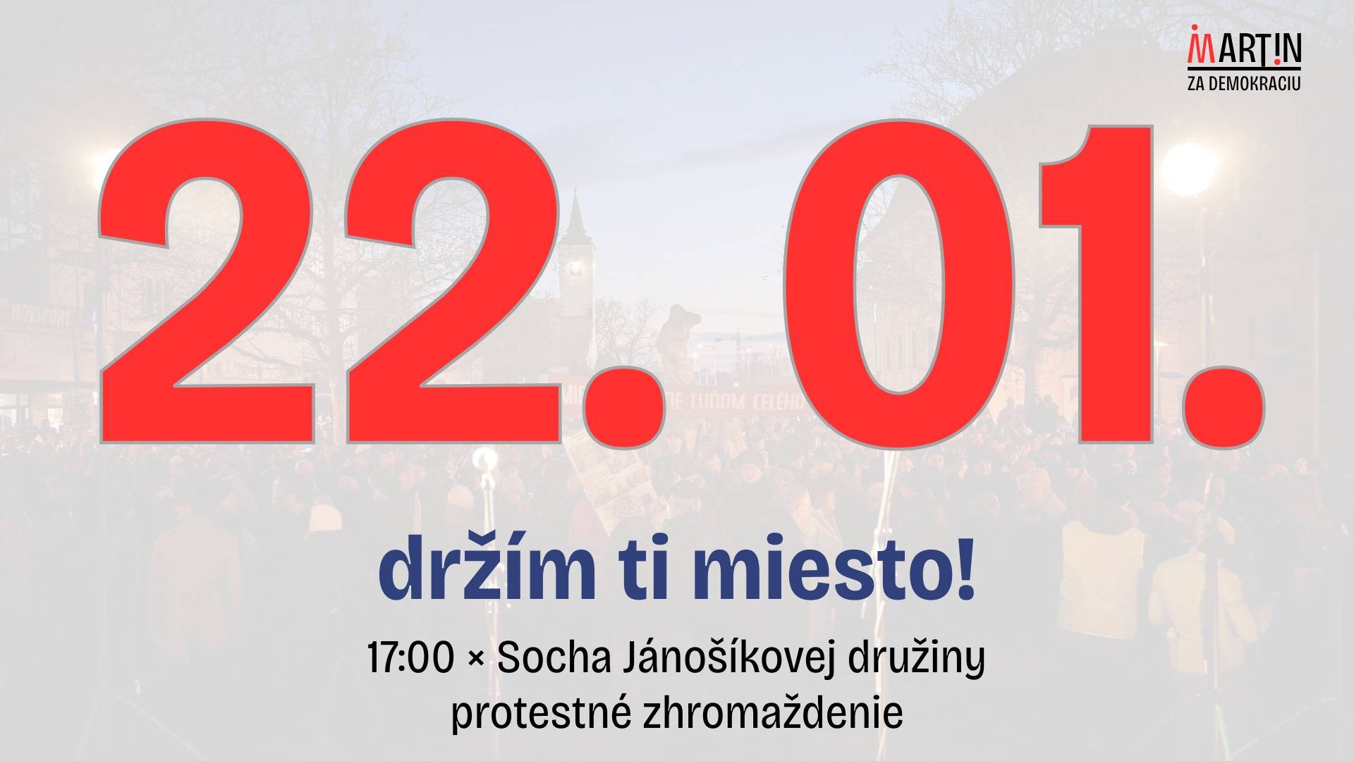 Dobrý deň, posielame vám zoznam plánovaných zhromaždení na nasledujúce dni: Študentské protesty Za našu budúcnosťKedy: 22.1., 18:00 Vo štvrtok 22.1. sa v Bratislave a Žiline uskutočnia protesty organizované študentstvom, ktoré nesú názov Za našu budúcnosť. Ako príslušníci nastupujúcej generácie chceme prostredníctvom nich vyjadriť nezlúčitelnosť súčasného politického smerovania našej krajiny s našou predstavou budúcnosti a vyzvať slovenské študentstvo na spoluprácu pri formovaní študentského hnutia s jasnými požiadavkami na vládu SR. Pridajte sa ku študentom v Bratislave alebo v Žiline: